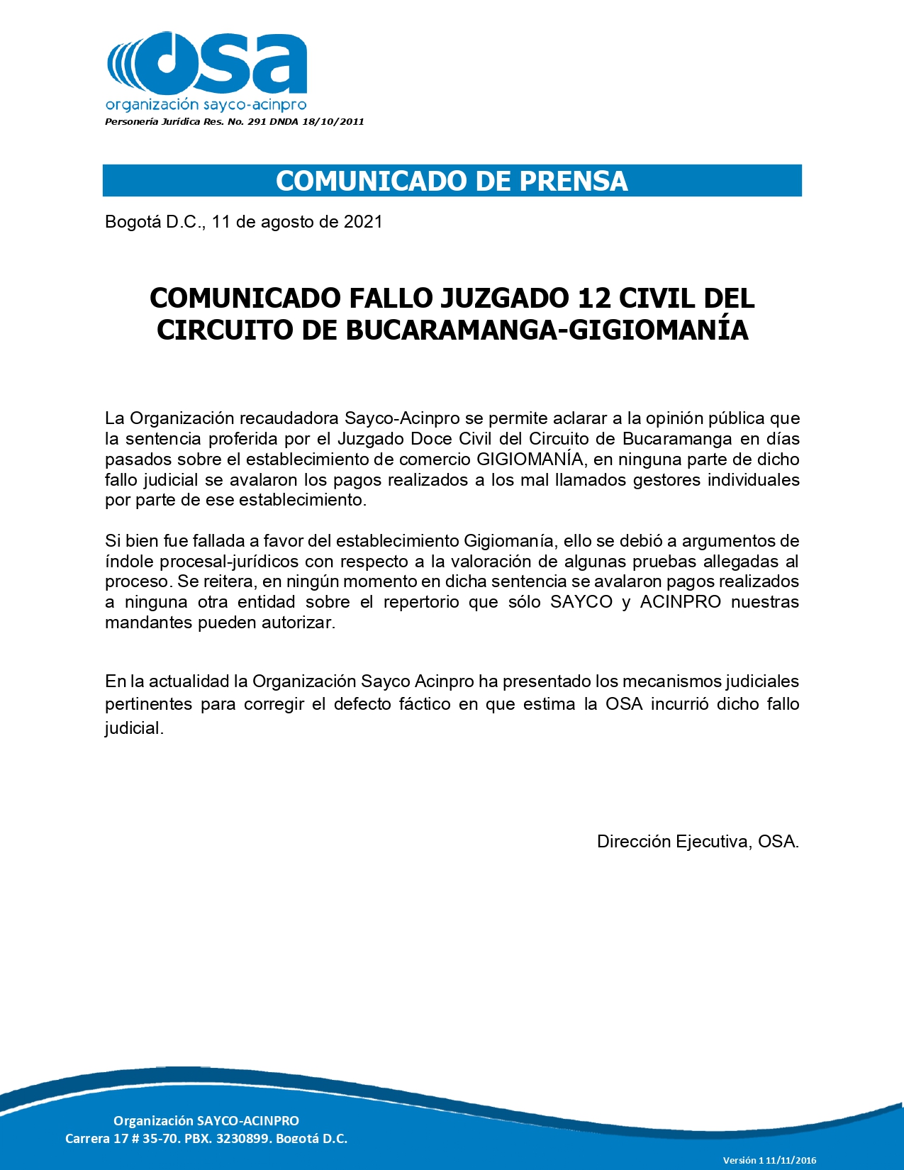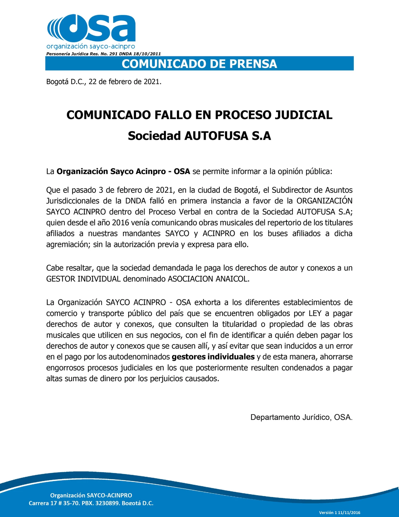 La OSA ha estado en un acercamiento continuo con el gremio de transportes desde el 2013, año en el que se empezó a comunicar a las empresas y asociaciones de ese sector la necesidad legal de licenciar la utilización de la música en los distintos servicios de transporte público terrestre.